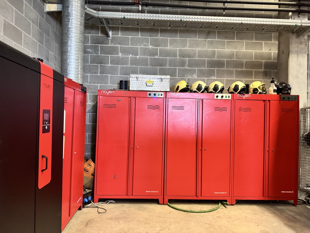 La RPA Hainaut Sécurité fait partie des premières institutions belges à s’être dotée de trois armoires séchantes, désinfectantes et dépolluantes, marquant une avancée majeure dans la gestion de la toxicité des fumées. Ces armoires décontaminantes de technologie Noven reposent sur une combinaison d’ozone, de température et de temps de traitement permettant une dépollution chimique et biologique complète des équipements de protection individuelle.